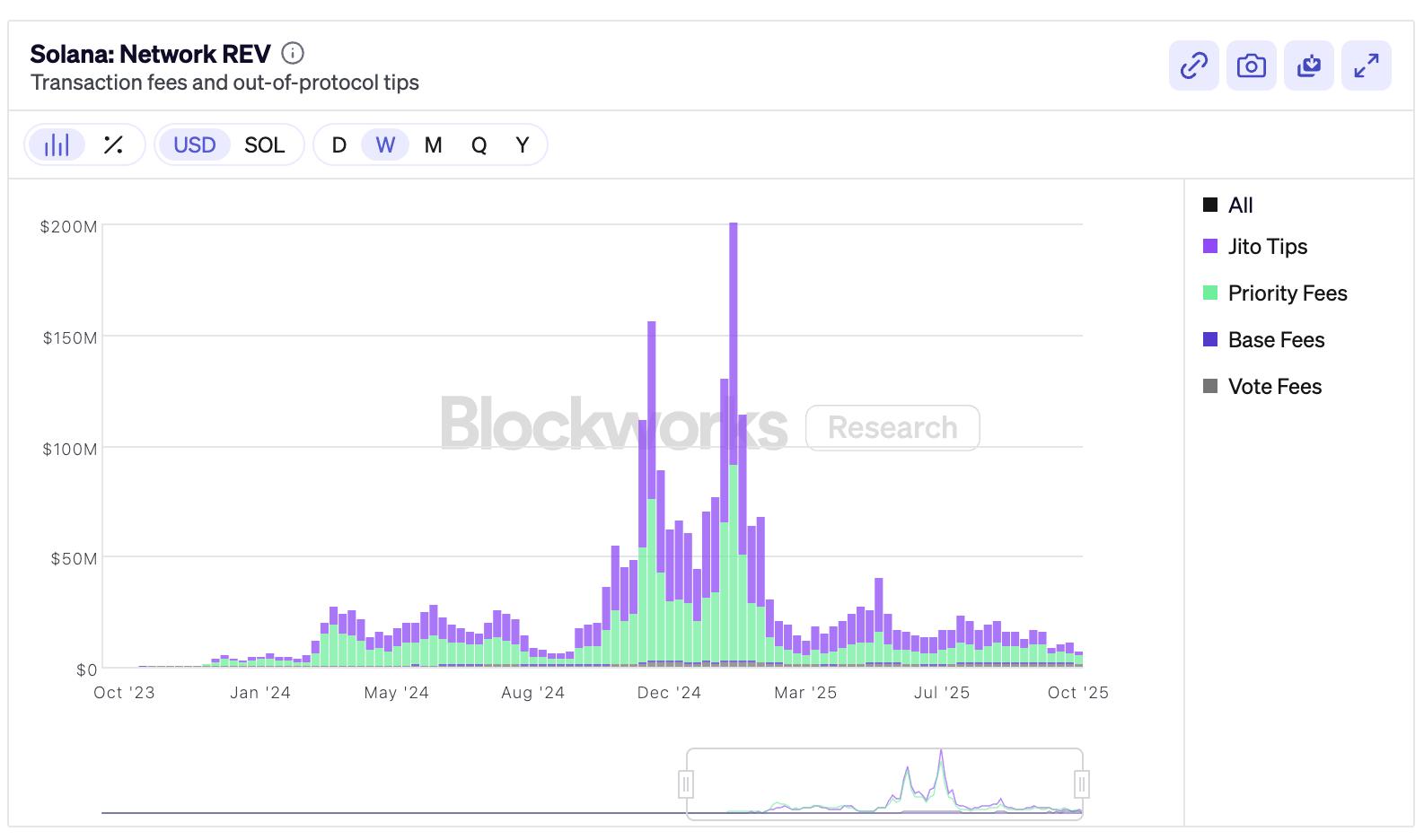 再加上 Solana 的网络 REV 自峰值以来已大幅下降,验证器操作不再像以前那样有利可图。