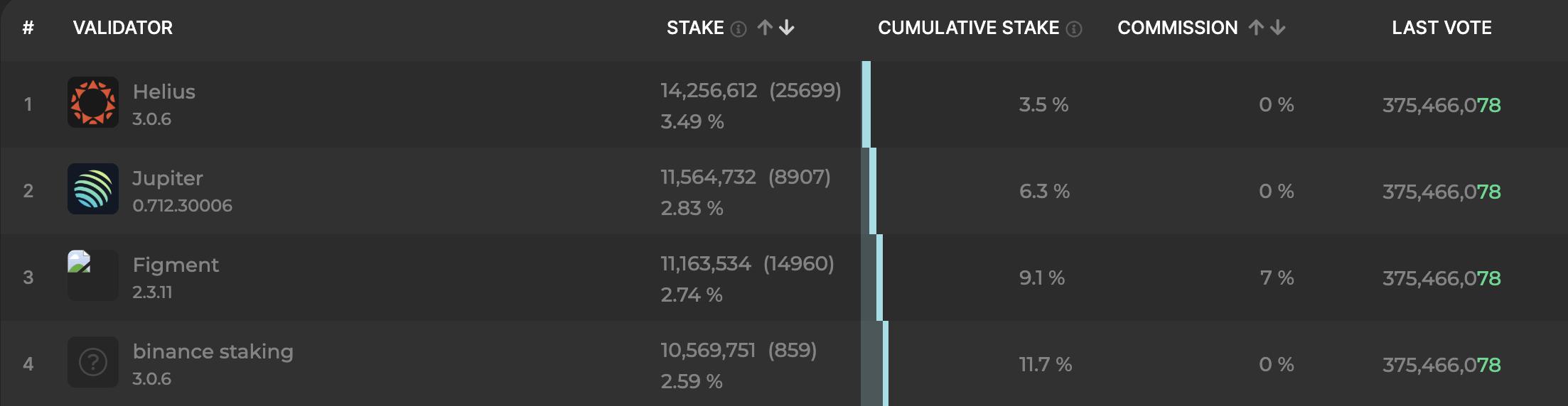 理论上,验证者数量的下降会威胁到 Solana 的去中心化和网络安全。权益始终集中在少数几家运营商手中,这使得像币安、Helius、Figment 和 Jupiter 这样的实体对网络拥有巨大的影响力。在 2023 年达到 34 个验证者之后,Solana 的超级少数(即可能合谋停止或审查网络的最小验证者数量)现在仅为20.