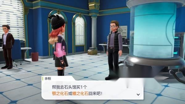 接取任务后,前往地图上的【石头馆】购买【颚之化石】或【鳍之化石】交给余恒即可完成此任务。需要的钱余恒会给。