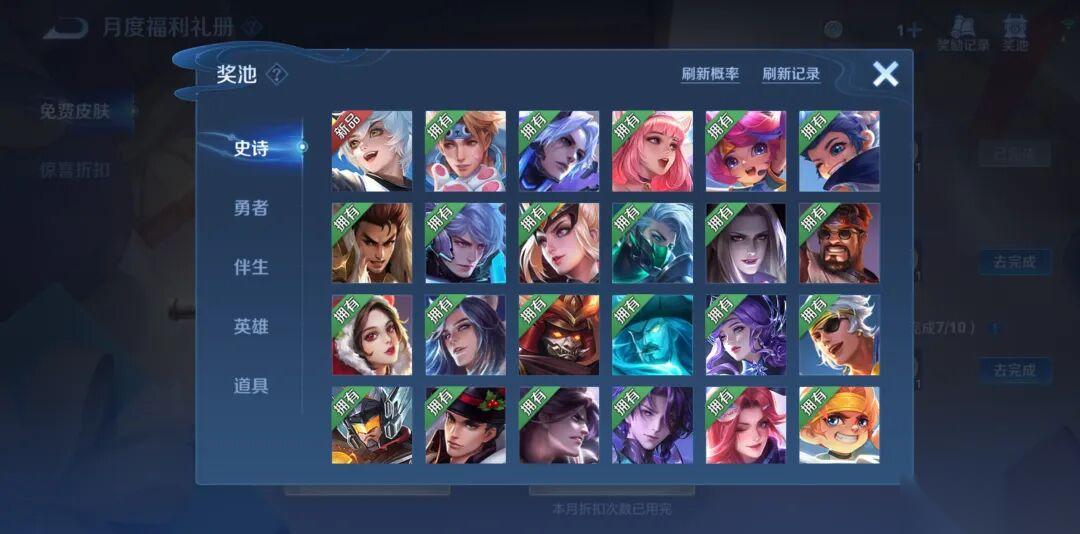 主要是因为现在的免费奖池不像以前那样优先给未拥有的皮肤,而是有可能刷到重复的。就像我这样,奖池里的皮肤明明都全了,结果还是刷出了百里守约的史诗皮肤,最后只能换成6张积分夺宝券。