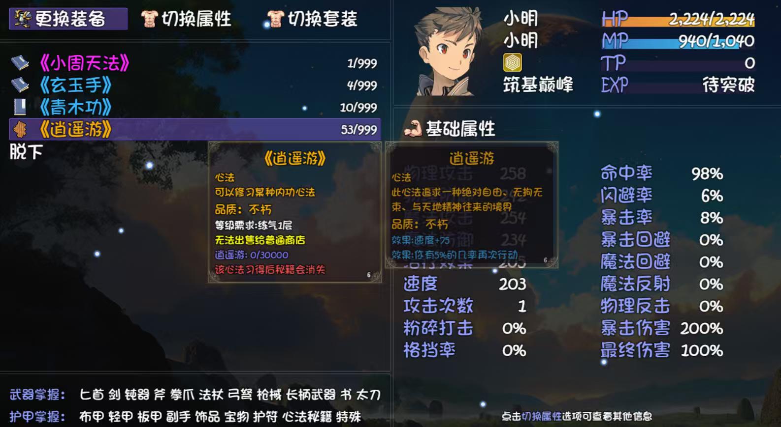 刷够六个筑基丹材料,两个给队友筑基,四个给珍馐任务用,直接逍遥游走起(如果你想换巴掌也行,确实很强,但我是再也不想再练一遍nt巴掌了)