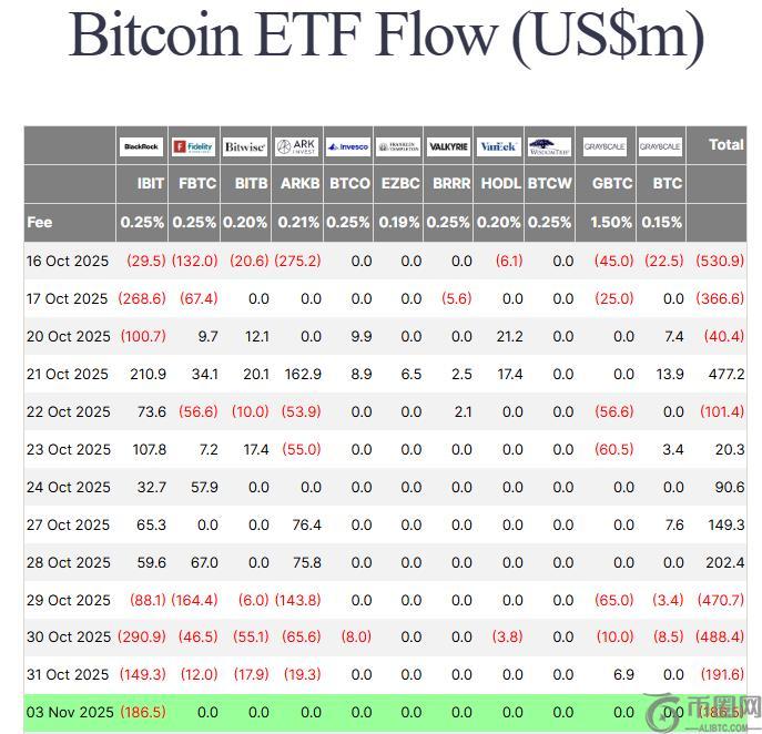 美国现货比特币ETF周一录得1.865亿美元的资金流出,连续第四天出现资金流出。值得注意的是,该投资工具在上周最后三天分别录得4.707亿美元、4.884亿美元和1.916亿美元的资金流出。