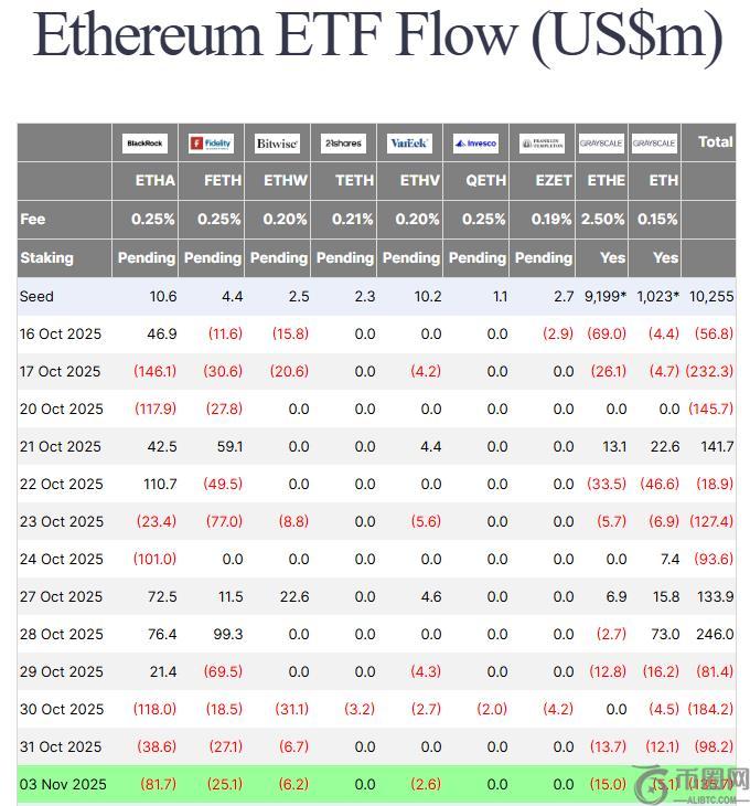 值得注意的是,周一,贝莱德旗下的ETHA是造成资金流出的主要因素,净流出金额高达8170万美元。这些令人沮丧的数据加剧了交易员的担忧,表明机构投资者对数字资产的风险偏好正在减弱。