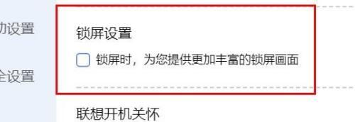 4、最后在打开的窗口界面中,找到"锁屏设置",将其中的"锁屏时,为您提供更加丰富的锁屏画面"小方框取消勾选就可以了。