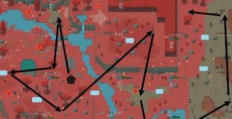 如图,从进入禁地开始,往上走开始进行刷图,只刷蓝色,如果能7分50秒完成蓝色怪全部清空,那么在最后一个传送门位置等待至倒计时2分钟,等待最后一个传送门刷新后开始跑图获取传送门信息。