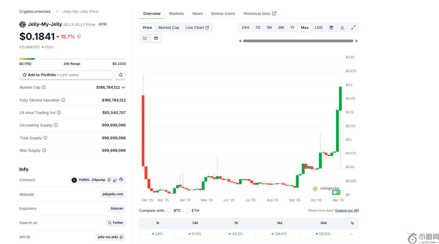 JELLYJELLY 的价格随即开始飙升,创下历史新高。