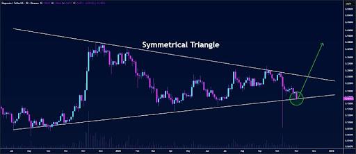 在X帖子Butterfly敦促狗狗币持有者保持警惕,因为狗狗币价格可能从当前水平“暴涨”。这位分析师指出,这种最流行的网络迷因币正面临下限。对称三角形在3日图表上,Butterfly补充道,该区域仍然是价格走势的强劲支撑位,并且多头压力正在迅速增加。