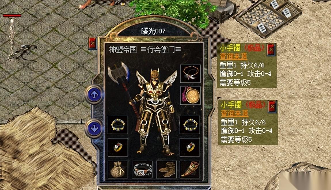 小手指作为最低端的首饰之一,产出多加点的概率自然就高一些,不过加高属性就比较难了。如上图所示,这位战士的这俩小手镯属性真不赖,它们都加了4点攻击属性,搭配自带的1点魔御属性之后要超越攻4死神手套和攻4魔力手镯,更重要的是它们稀有,戴出去更有面儿。
