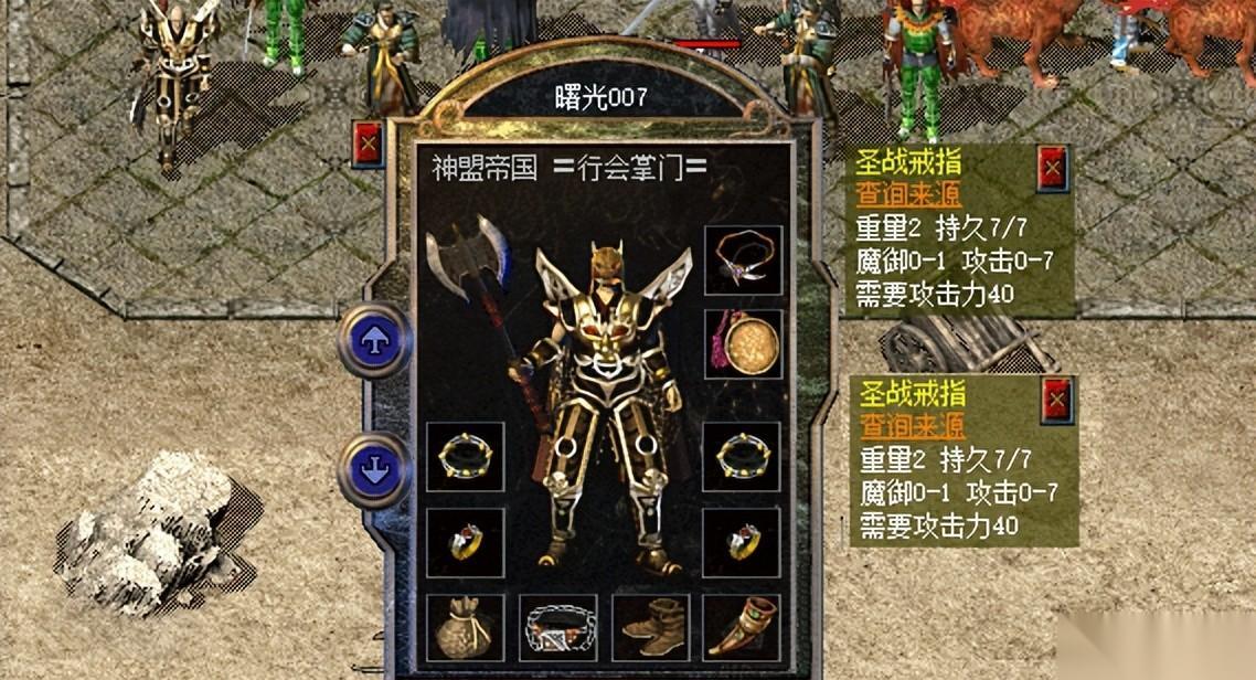 最少出现加点的首饰当属戒指系列了,加点顶不上去,那么就找名牌即可。比如上图中这对圣战戒指就是现阶段新百区战士的高端搭配系列,拥有如此戒指也算是大战士级别了。