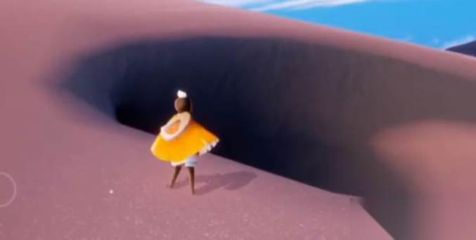 进入隐藏通道后需掌握精准飞行技巧,因通道内部空间狭窄且存在气流干扰。建议保持低空滑翔状态,利用通道内零星分布的光蝶补充能量。接近底部时会遇到一处需要双人协作开启的机关门,若独自探索可尝试从门缝边缘卡视角滑入。穿过机关门后继续向下飞行约10秒,洞穴中央悬浮的发光篮子便会出现在视野中,其底部有环形光纹特效作为识别标志。