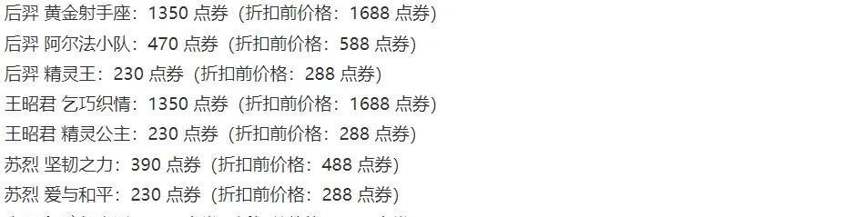 英雄这块,包括王昭君+苏烈+大司命+老夫子,都会从588点券降价至488点券,而我的建议则是最好别用点券购买英雄。