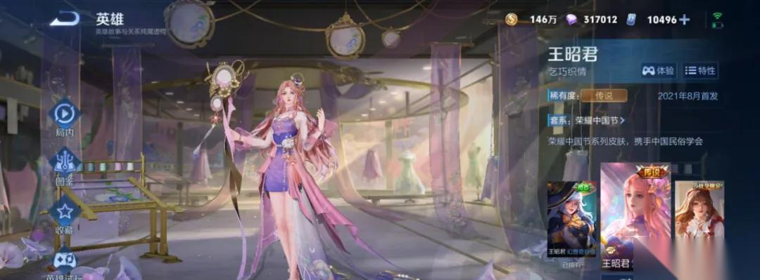 第2款是王昭君的乞巧织情,价格也会从1688降价至1350,这款皮肤的“稀有度”则高很多了,目前仅上架过两次神秘商店,限时点券商城也无法兑换。