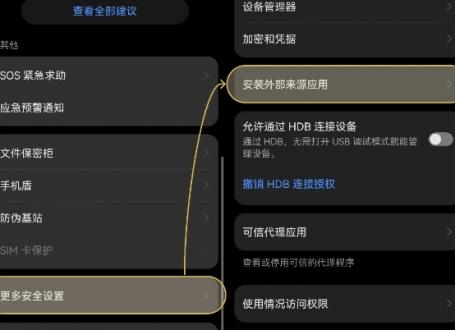 2. 进入【设置】→【安全】→【更多安全设置】→【安装外部来源应用】,选择您用于下载App的浏览器,点击进入后开启【允许】