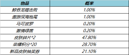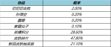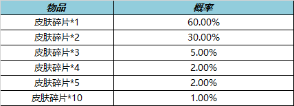 礼盒内含皮肤碎片*1,附赠奖励概率公示如下: